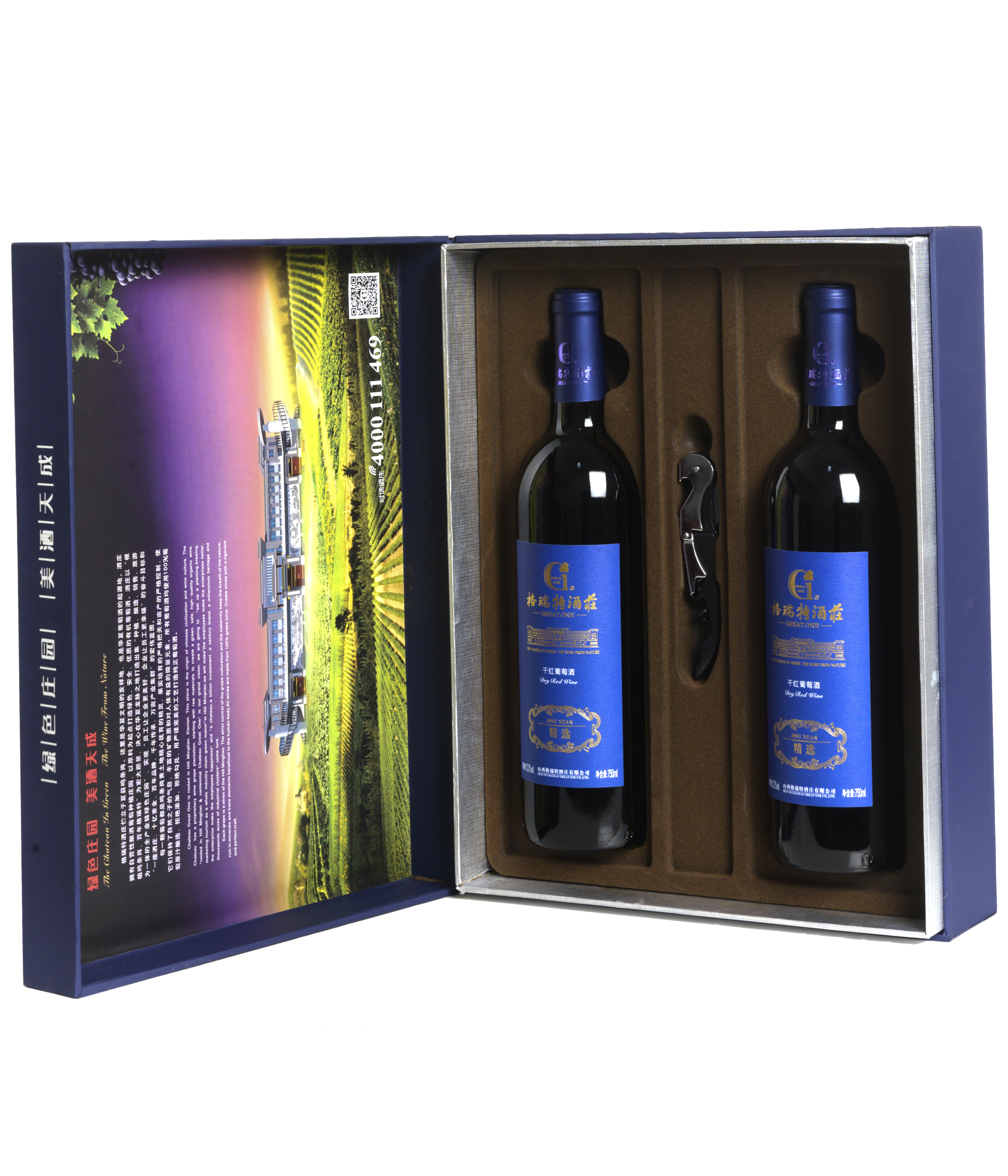 商務(wù)禮盒標配精選干紅2支,酒質(zhì)上乘,酒品典雅。是企事業(yè)單位饋贈客戶的首選佳品,也是親朋好友之間的中高端饋贈產(chǎn)品。