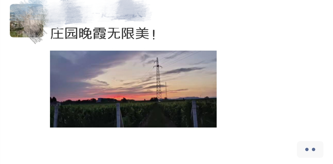 夏日的晚霞別有一番風情,當最后一縷夕陽的余暉掠過窗前,放下手中的書,望著天際漫漫鮮紅,晴空萬里的流霞,驚艷起我的思緒,“到底誰驚動了她”,落日余暉,夕陽西下的鳴條顯得格外安靜,看著滿園的葡萄在晚霞中漸漸隱去,趨于平靜的時光就留在此刻。鳴條崗的美,是那一種你沒來過是無法領略的美,這個地方遠離塵世,意境在心,一切,終將浸入。