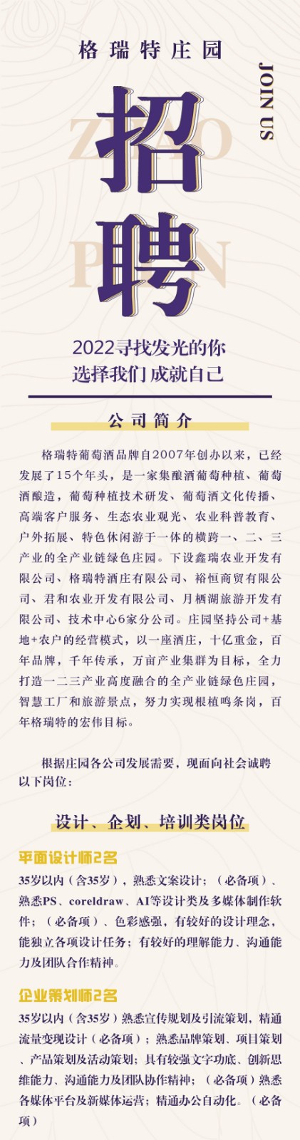格瑞特莊園2022年春季招聘開始啦!